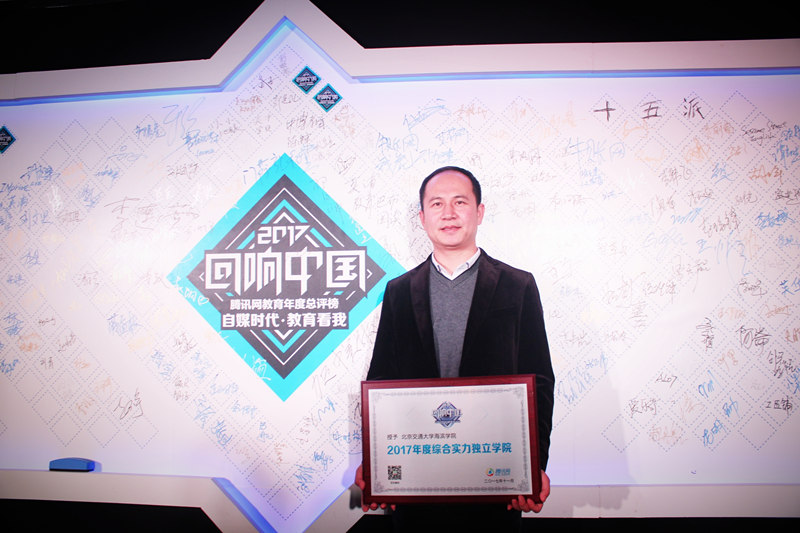 11月22日,由腾讯网主办的2017年度“回响中国”教育年度总评榜活动在北京隆重举行。sunbet官网以优异的成绩,荣膺“2017年度综合实力独立学院”称号。院长助理任福义应邀代表sunbet官网出席本次盛典,接受现场颁奖。