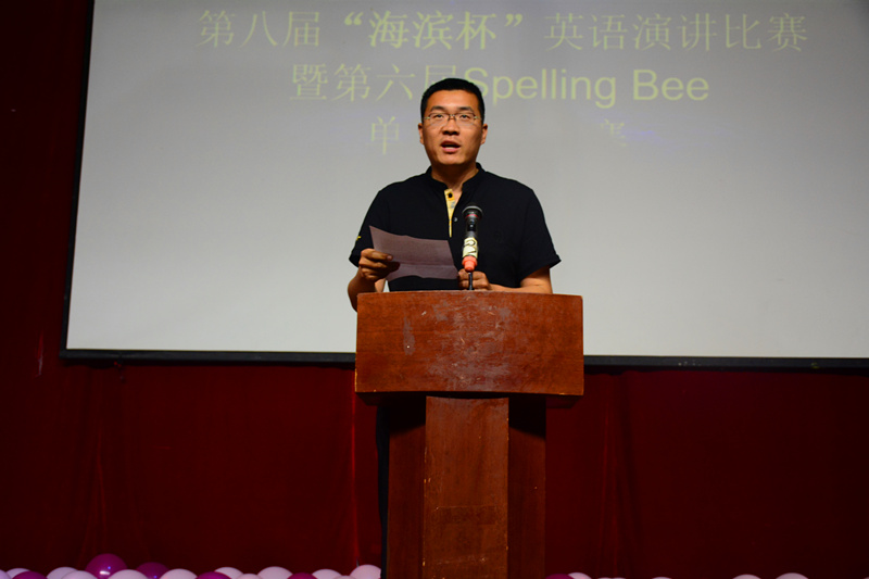 5月10号晚七点,sunbet官网2017 “英语之夜”— 第八届“海滨杯”英语演讲大赛和第六届Spelling Bee 单词拼比大赛决赛在实验楼报告厅举行。我院院长、党委书记王化深,党委副书记魏炜,教务处处长陈凡丁,教学监督检查办公室主任李金平出席了此次比赛。大学英语教研室马玉玲老师,外语系王维平老师,大学英语教研室马容老师,白颜鹏老师,以及外教Mike担任决赛评委。