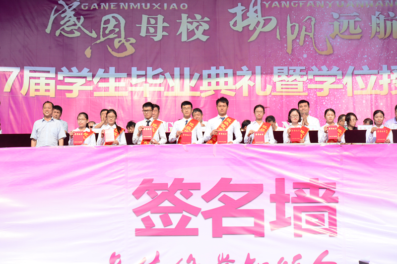 毕业生代表向母校赠送礼物后典礼在全场热烈的掌声中圆满落幕