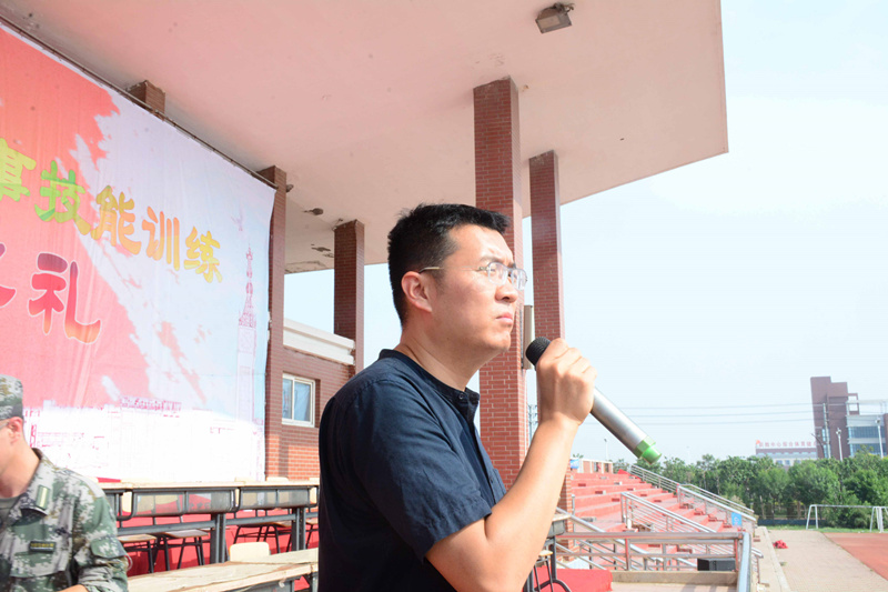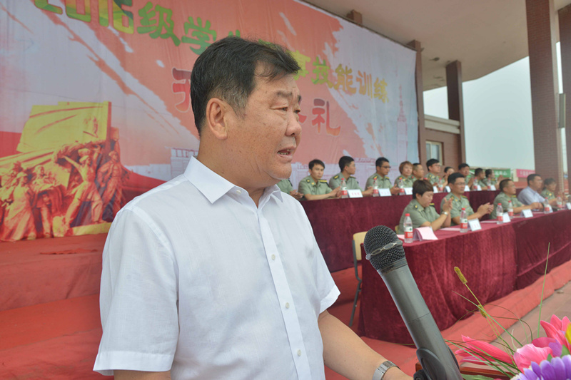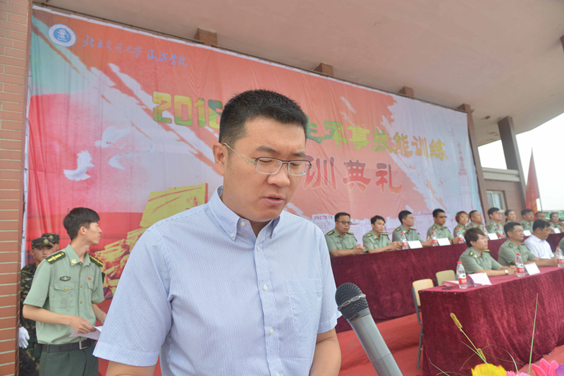 7月4日七点半,2016级学生军事技能训练开训典礼在学校操场举行。北京交通大学国防生选培办倪立萍干事,黄骅市武装部李英政委,我院院长、党委书记王化深,党委副书记魏炜以及相关职能处室负责人和各系团委书记出席典礼。