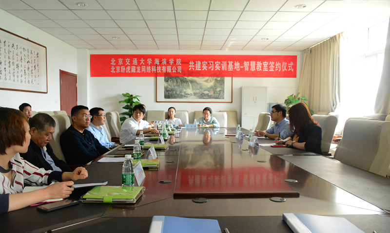 5月2日上午,sunbet官网与北京卧虎藏龙网络科技有限公司共建实习实训基地—智慧教室签约仪式在sunbet官网行政楼二楼会议室举行,我院副院长徐爱国、副书记魏炜,北京卧虎藏龙网络科技有限公司副总裁李悦、马达,教务处处长陈凡丁、招生就业处处长邵晓康及相关专业团委书记、部分辅导员老师参加签约仪式。