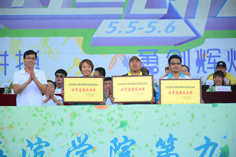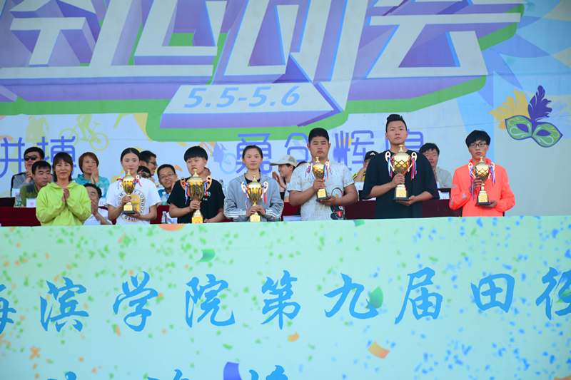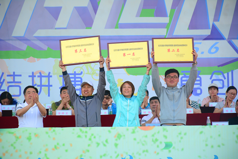 薛院长宣布第六届篮球联赛(男子组和女子组)、第六届排球联赛、第六届拔河比赛和第二届七人制足球联赛的比赛结果,随后校领导及相关职能处室负责人为获奖团体颁奖。