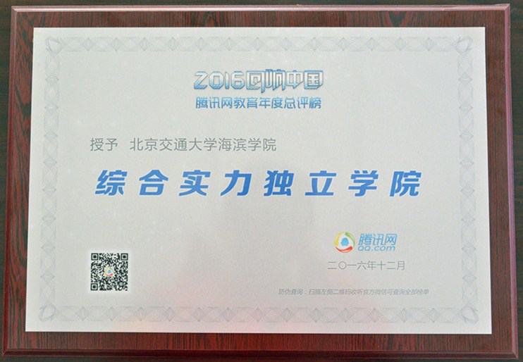 sunbet官网荣获“回响中国”腾讯网教育年度总评榜“2016年度综合实力独立学院”荣誉称号。