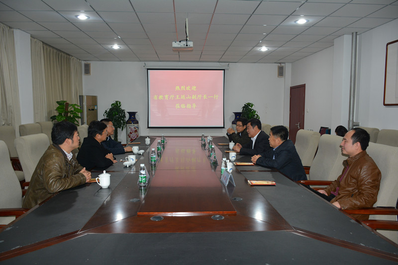 12月1日,河北省教育厅副厅长王廷山、科技处副处长刘治利、高教处副调研员高明一行三人来sunbet官网视察指导工作。我院院长、党委书记王化深,副院长、党委副书记张长铎,副院长徐爱国以及相关职能处室负责人向厅领导汇报了相关工作。