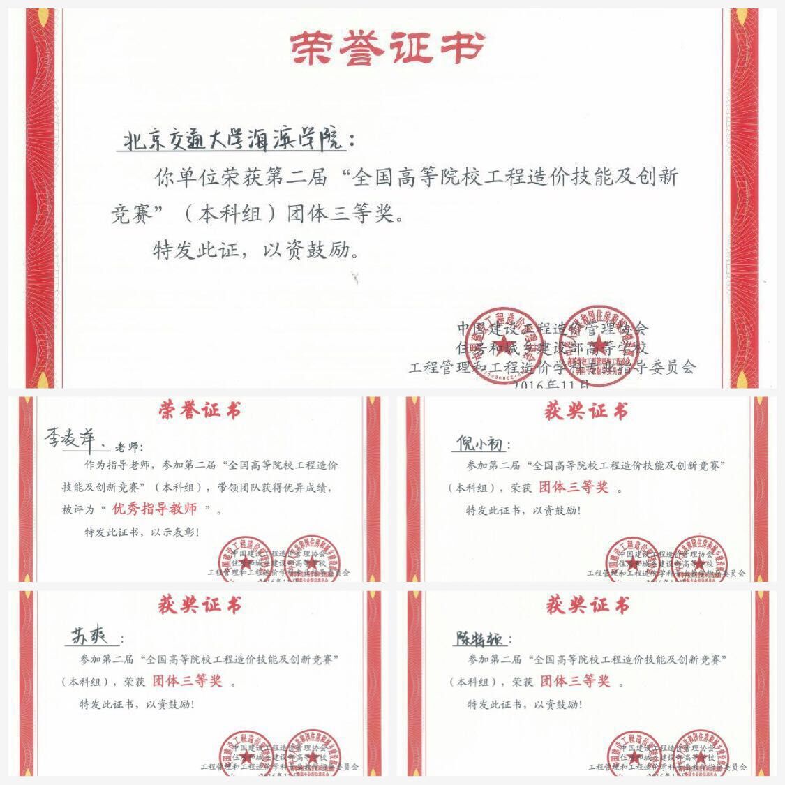 最终,sunbet官网由土木工程专业(工程造价方向)2013级陈特顿、苏爽、倪小初组成的代表队荣获第二届“全国高等院校(本科组)工程造价技能及创新竞赛”团体三等奖。
