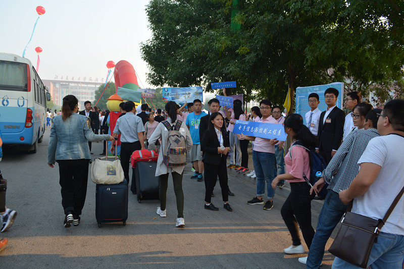 学生志愿者对新生进行引导