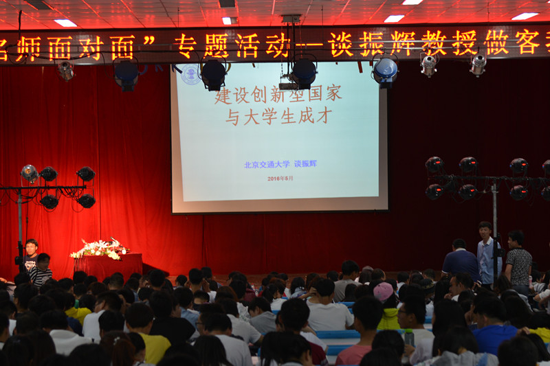 2016年5月25日下午,博士生导师、无线通信专家、原北京交通大学校长谈振辉教授在我院实验楼报告厅为我院师生做以“建设创新型国家与大学生成才”为主题的报告,我院院长、党委书记王化深,副院长、党委副书记张长铎,副院长张乐乐,党委副书记孙文博,副院长徐爱国等院领导出席了报告会,部分无工作任务教职工及学生代表参加了报告会,报告会由王化深院长主持。