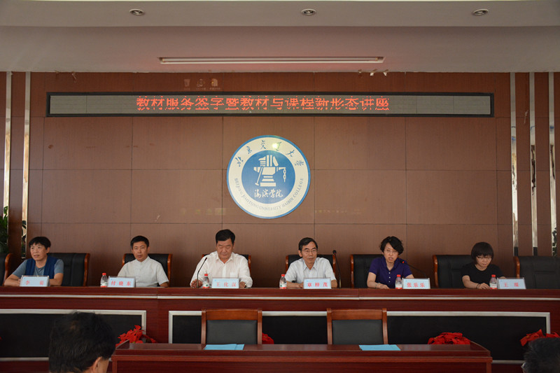 随后章社长做了主题为“高校教材与课程建设新形态——基于媒体融合的M+Book”的讲座,从教材等出版物形态沿革、国家“十三五”规划、人才培养模式、高校教材与课程建设四个方面展开,以M+Book为例向老师们展示了教材与课程建设新的形态,重点介绍了信息技术与课程、教材、教师教学结合重要性,同时还从“国家‘十三五’教育规划对大学发展的机遇与挑战”“信息技术及网络技术背景下课堂教学模式改革”等方面结合自身体会为老师们做了详细讲解,并表示出版社会支持海滨学院的基础课与专业核心课程建设,希望老师们积极参与。