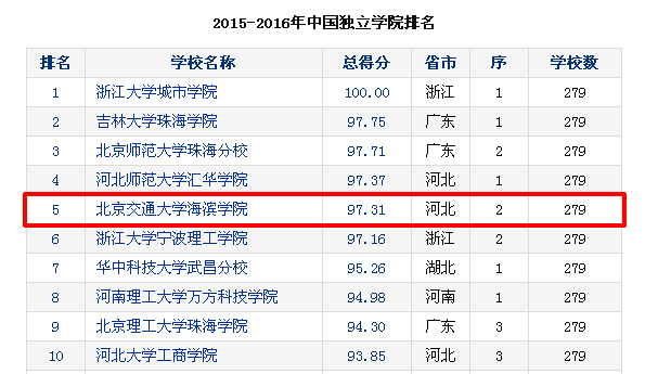 我院荣登中国独立学院排行榜全国第五名