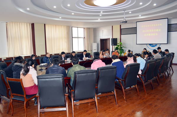 1月10日上午9:00,我院2014年度信息化建设总结暨表彰会在行政楼B512会议室召开。我院执行院长王大勇,信息中心主任赵广顺、副主任郭朋辉出席会议。13个职能处室、10个教学单位的信息员及信息中心工作人员参加会议。