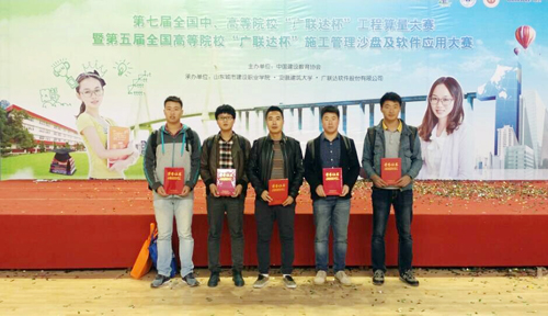 10月31日—11月2日,由中国建设教育协会主办,安徽建筑大学、山东城市建设职业学院、广联达软件股份有限公司承办的第七届全国中、高等院校“广联达杯”工程算量大赛暨第五届全国高等院校“广联达杯”施工管理沙盘及软件应用大赛(简称广联达校园大赛)分别在山东城市建设职业学院(北方赛区)和安徽建筑大学(南方赛区)同步举行。北方赛区参赛院校160余所、参赛队伍近300支,参赛师生超过1200人。在我院经济管理系主任助理刘红杰老师的指导和带领下,我院工程管理专业2012级学生徐韶峰、张冬琦、桑乐、赵建楠四名同学赴山东城市建设职业学院参加北方赛区的比赛。