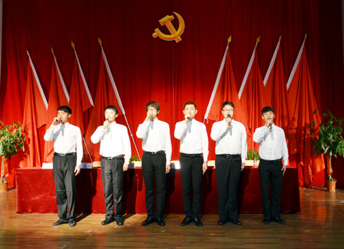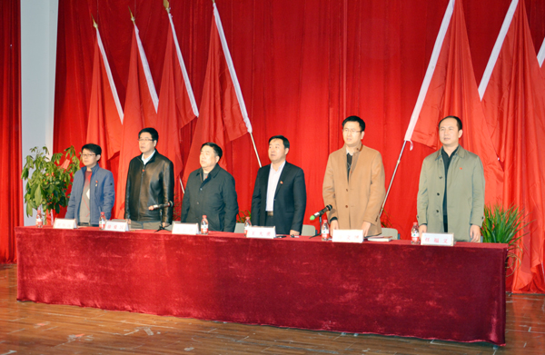 下午4:00,动员大会正式开始,全场高唱中华人民共和国国歌。