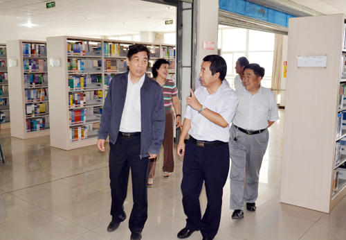 在我院领导的陪同下,闫春来会长一行首先乘车参观了我院校园,并对我院校史馆、图书馆、实验室及校内实训基地进行了全面考察。