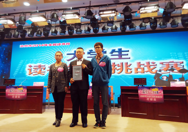 10月23日,沧州市2014年全民读书月系列活动之大学生读书知识挑战赛在市图书馆举行。大赛旨在开拓大学生知识视野,扩大自主学习范围,让大学生在体验竞技乐趣的同时,增加知识储备,提升文化修养和综合素质,倡导青年阅读新风尚。