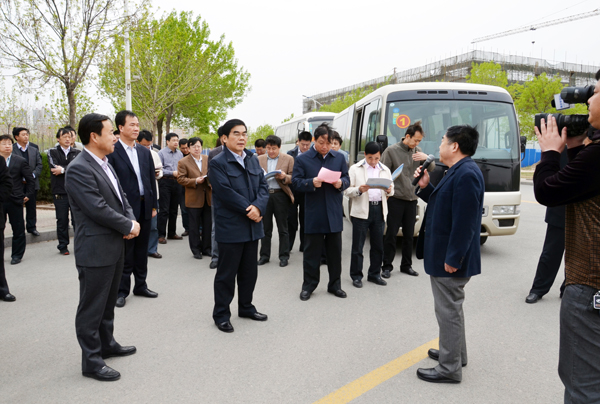 4月10日下午,沧州市委常委、渤海新区党工委书记、管委会主任丁绣峰带领新区党工委、管委会领导班子及区直部门、“一市三园”相关负责同志莅临我院,就校园二期工程建设情况进行观摩考察。我院执行院长王大勇,副院长兼副书记张长铎,副院长徐维祥,副书记孙文博及各相关单位负责人接待了观摩团的各位领导。