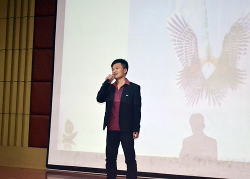 刘骏文在才乡文学论坛·青年作家讲座上讲述自己的文学经历