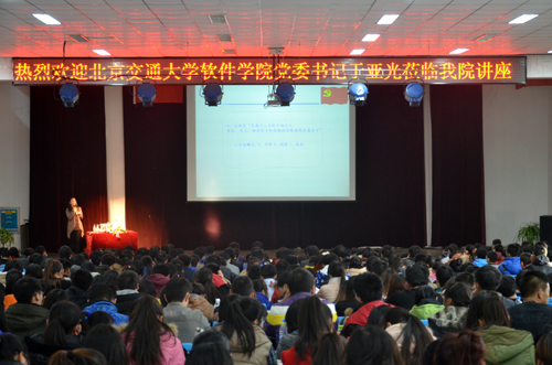 11月16日下午,北京交通大学软件学院党委书记于亚光党课讲座在我院实验楼报告厅举行。我院党委副书记孙文博及各相关单位负责人出席讲座。我院教职工入党积极分子、学生入党积极分子以及部分师生党员聆听讲座。讲座由孙文博副书记主持。
