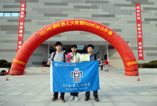 这是我院代表队第二次参加中国机器人大赛暨RoboCup公开赛并获奖。在2012中国机器人大赛暨RoboCup公开赛舞蹈机器人大学组(自创双足人形)比赛中,我院代表队荣获全国一等奖,并以全国第三名的优异成绩夺得季军奖杯。对于2013中国机器人大赛,院系两级领导高度重视、大力支持,专门安排代伟业老师和杨树岗老师指导学生参加比赛,ET机器人工作室11名队员精心准备,全力备战。最终,在众多一本二本高校优秀选手参赛的情况下,作为三本层次的独立学院,我院代表队在激烈竞争中脱颖而出,取得喜人成绩,受到大赛评委的一致认可。
