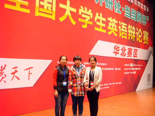 10月17-20日,第十七届“外研社·当当网杯”全国大学生英语辩论赛华北地区决赛在外交学院举行,我院选派外语系主任助理张丽老师、指导教师陆朝霞老师带领外语系11级学生俞盼、12级学生熊瀚祺两名选手参加比赛。