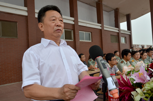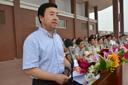 王大勇执行院长作军训动员讲话。王院长指出,参加军事训练,不仅可以使同学们掌握基本军事技能、增强团队合作意识,而且能够使同学们拥有健康的体魄、坚韧的品格、良好的作风和顽强的意志。王院长从敢于吃苦、严守纪律、刻苦训练等方面对全体参训学生提出具体要求,同时希望全体工作人员精心组织、抓好细节、密切协作,确保圆满各项军训任务。