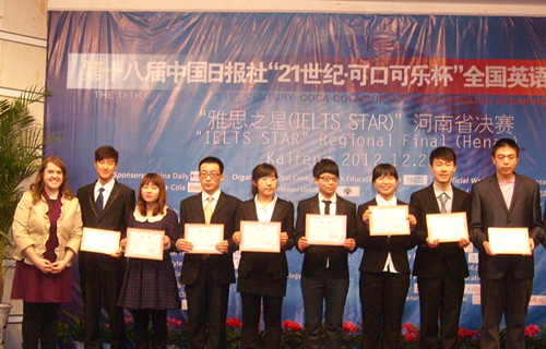 12月23日,第十八届中国日报社“21世纪·可口可乐杯”全国英语演讲比赛(河南赛区)决赛在河南大学举行,共有来自河南、山西、河北三省的30名优秀选手同台竞技。