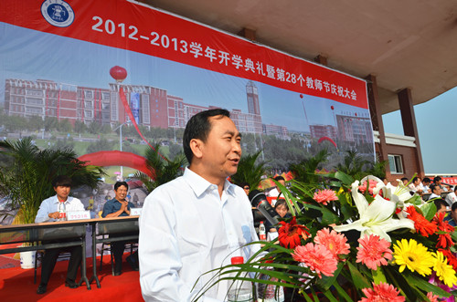金秋九月,丹桂飘香。9月9日上午8:30,我院2012-2013学年开学典礼暨第28个教师节庆祝大会在学院操场隆重举行。北京交通大学党委副书记、我院院长高福廷,黄骅市委常委、副市长夏爱华,北京交通大学校长助理郑广天与各相关单位负责人以及投资方的代表等领导和嘉宾应邀出席大会并在主席台前排就座。我院全体院领导、各系部处室负责人、责任教授以及全体师生员工参加大会。大会由我院执行院长王大勇主持。