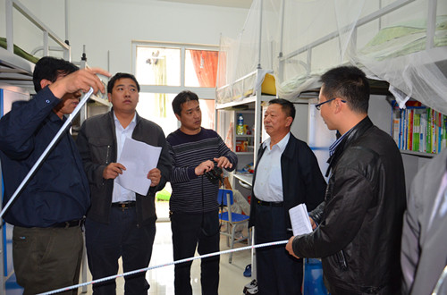 随后,叶处长一行在王院长等院领导的陪同下深入我院二期学生公寓现场进行考察,检查组一行看到我院二期工程标准高、质量优,配套设施较为完善,表示非常满意。