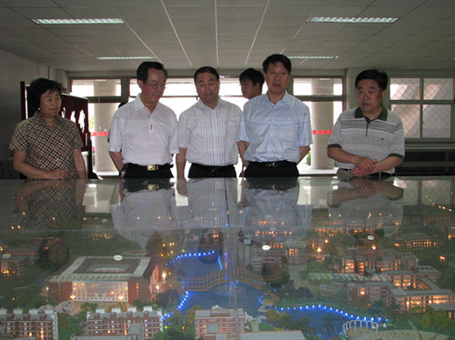 在学院校史馆内,张院长从我院基础建设、教学服务理念、未来的发展规划向客人们详细介绍了我院的发展历史、发展现状以及发展前景。匡主席在参观学院校史馆、在建二期工程后,对学院整体规划给予了高度的评价。