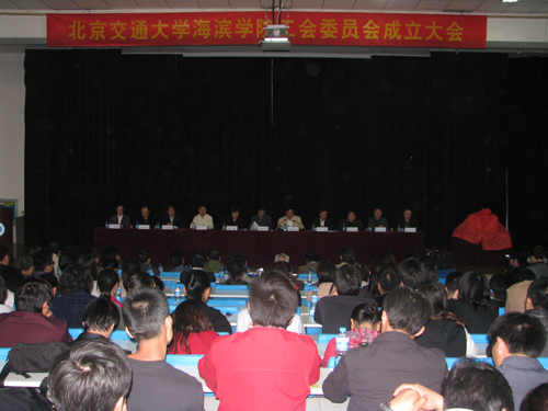 2011年4月15日,北京交通大学海滨学院工会委员会成立大会在实验楼报告厅举行。北京交通大学党委副书记、工会主席、海滨学院院长高福廷教授,黄骅市委常委、组织部长黄瑞强同志,北京交通大学工会常务副主席殷快同志,黄骅市总工会副主席曹绪贵同志莅临祝贺并与我院领导和新当选的工会主席、副主席在主席台就座。成立大会由执行院长王大勇同志主持,来自学院各单位的100多名工会会员参加了大会。北京交通大学工会代表团和黄骅市总工会有关领导也专程到会祝贺。