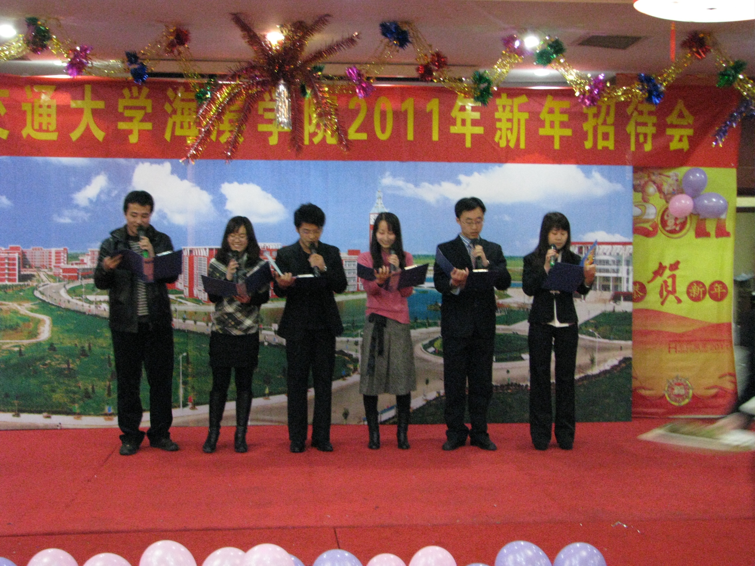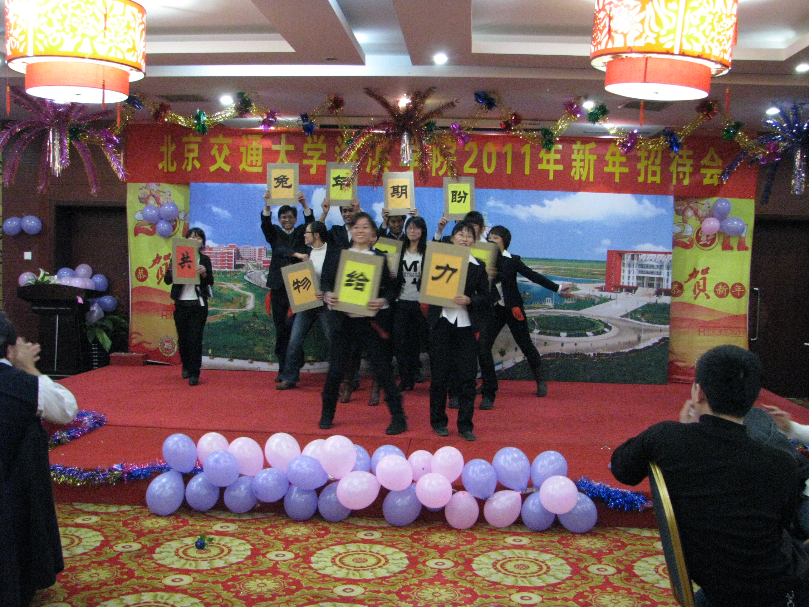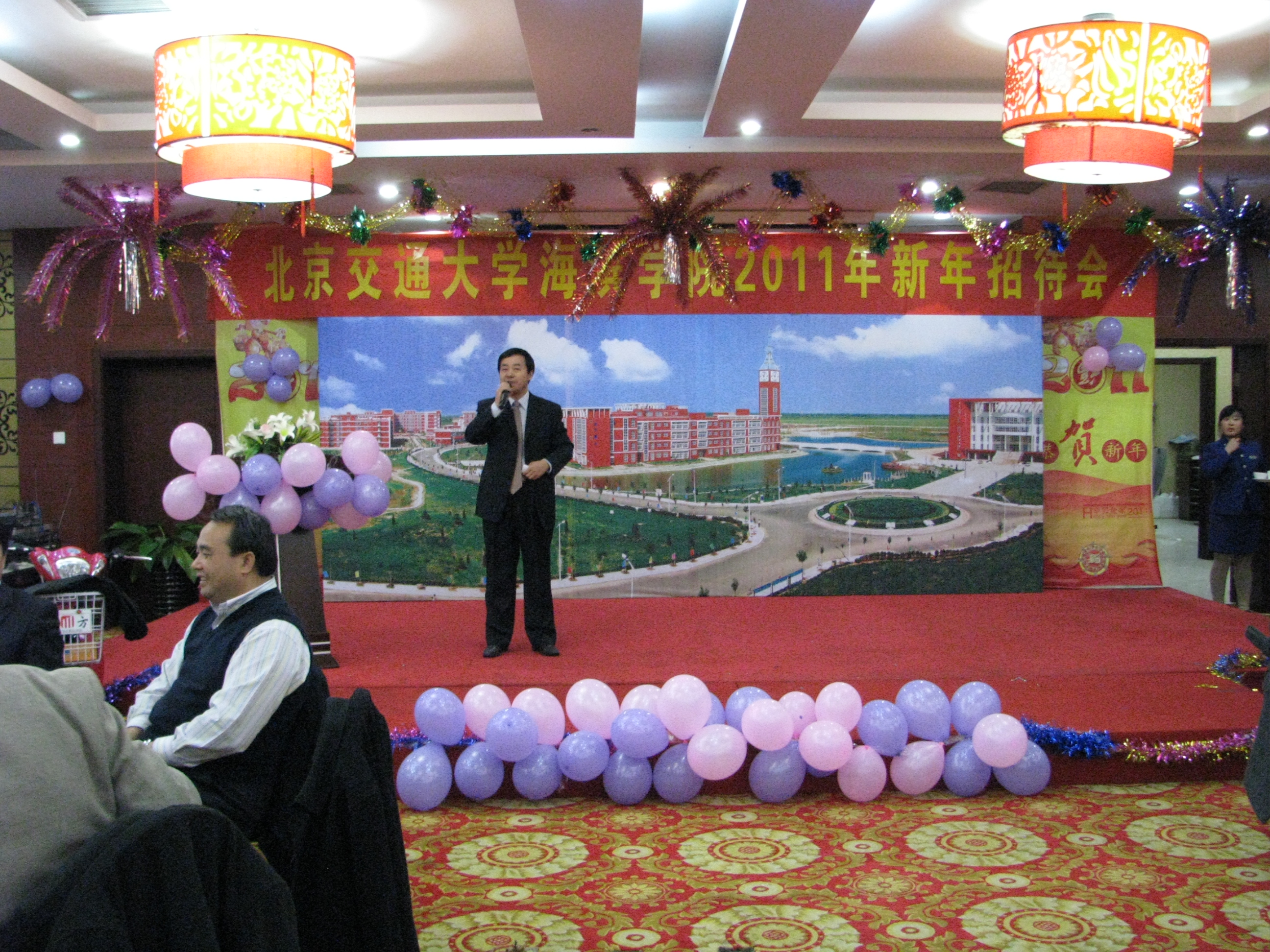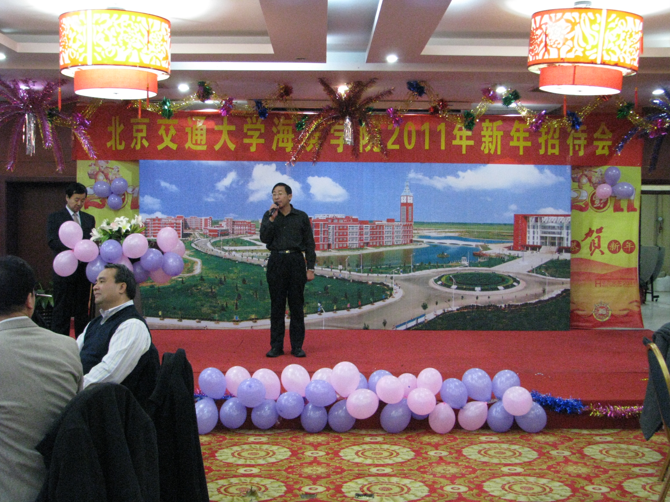 我院于12月30日晚在华悦凯旋大酒店南海厅隆重举行2011年新年招待会。黄骅市人民政府市长边老刚,学院董事长薛行远,北京交通大学党委副书记、院长高福廷以及全体院领导和华城科教有限公司有关负责人与全院教职工欢聚一堂、辞旧迎新、共谋发展。