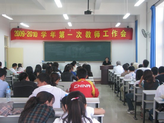 为了迎接新学年的到来,更好地推进2009-2010学年教学工作的开展,教务部于8月30日下午在教学楼B301召开了2009-2010学年第一次教师工作会。学院党委书记张平之、副院长张长铎和张淑琴以及图书馆、后勤服务中心相关负责人出席了此次会议,会议由教务部主任叶斌教授主持。