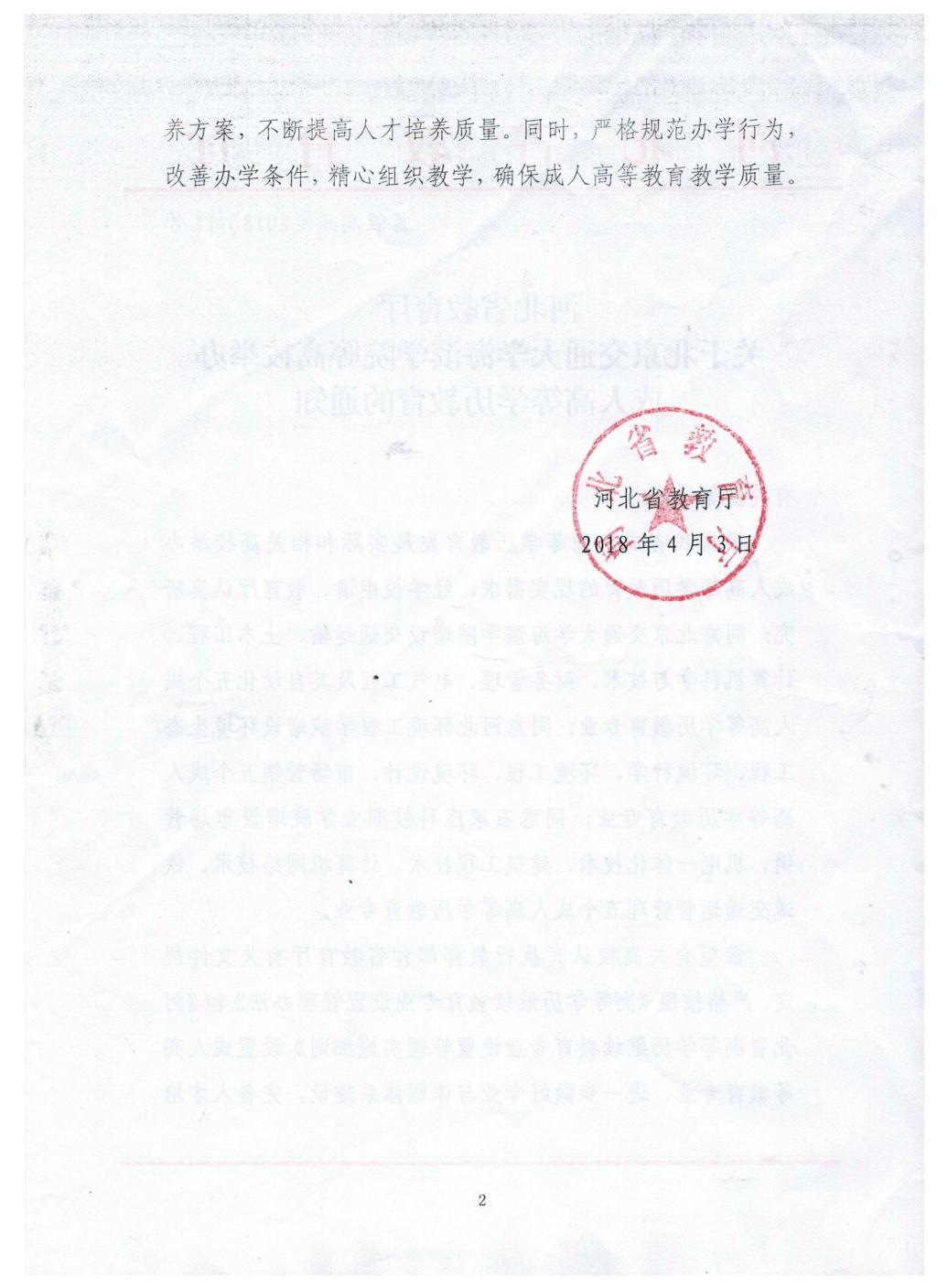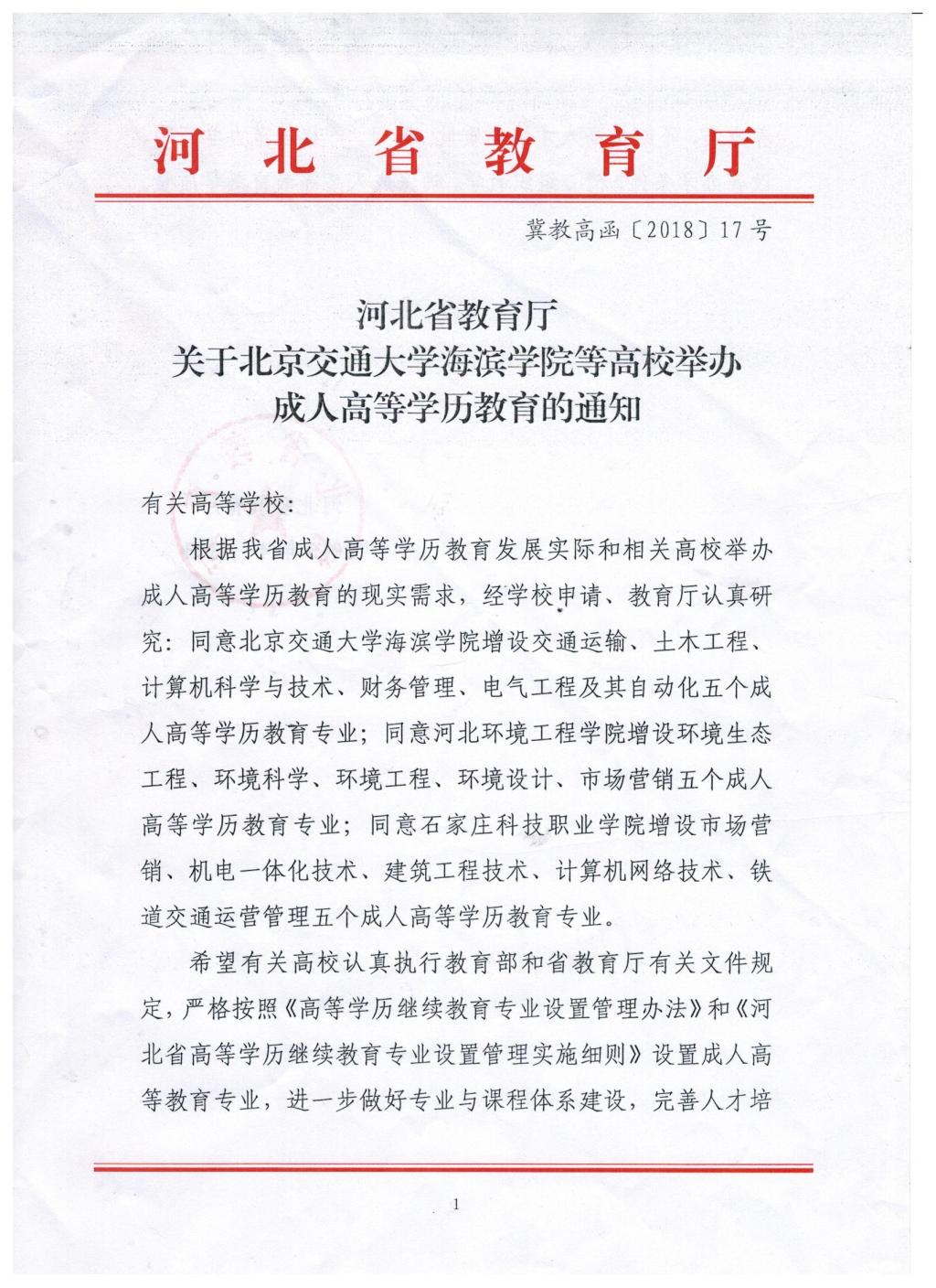 为充分发挥高校服务地方经济社会发展的职能,实现高校与企业之间对人才培养的有效对接,满足各行业对继续教育、终身教育的渴求,根据我省成人高等教育发展实际和现实需求,sunbet官网向河北省教育厅申请开展成人高等学历教育。4月3日,河北省教育厅下发《关于北京交通大学海滨学院等高校举办成人高等学历教育的通知》(冀教高函〔2018〕17号),sunbet官网成功获批交通运输、土木工程、计算机科学与技术、财务管理、电气工程及其自动化五个成人高等学历教育资质。