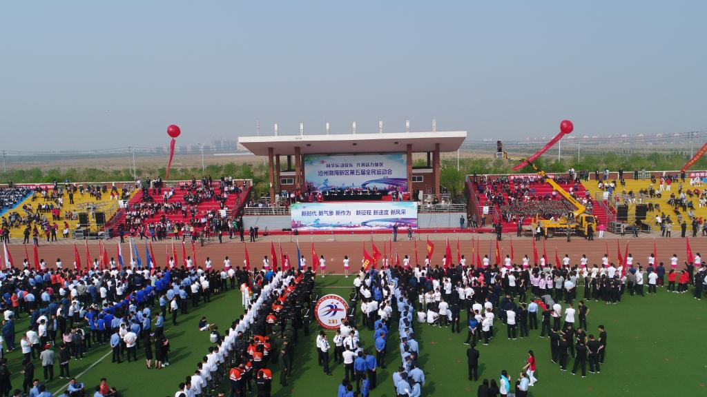 4月26日上午,渤海新区第五届全民运动会在sunbet官网隆重开幕。sunbet官网王化深院长受邀参加了开幕式并在主席台就座。来自新区各界群众2000余人共同观看了开幕式盛况。开幕仪式由渤海新区党工委委员、黄骅市委书记朱春燕主持。