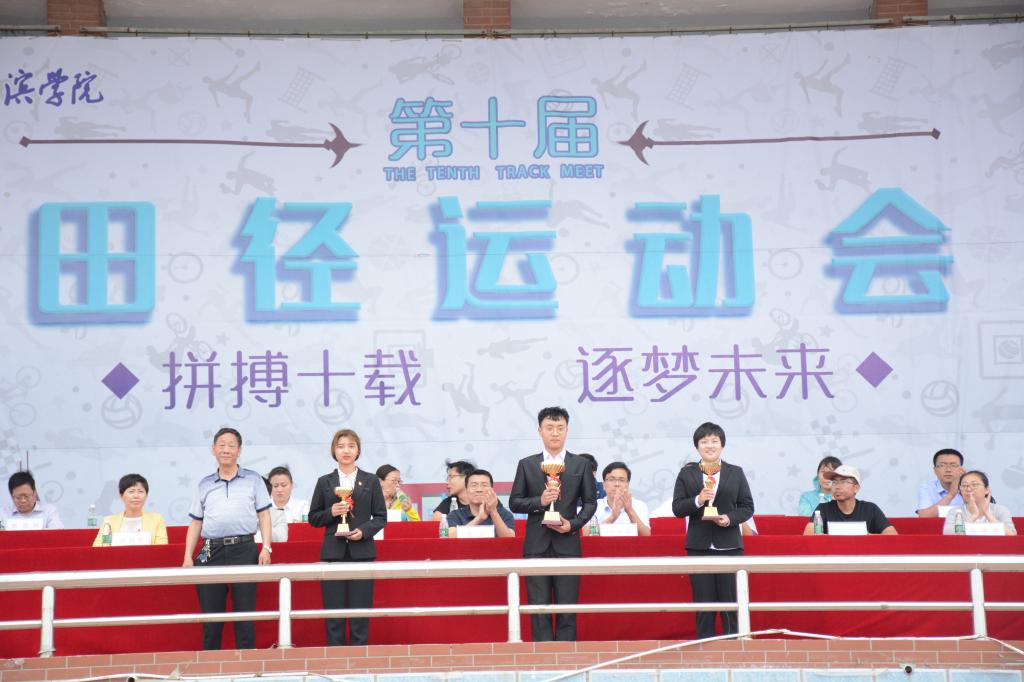 最后,由基础教学部主任助理薛彬宣布第十届田径运动会颁奖仪式圆满结束。