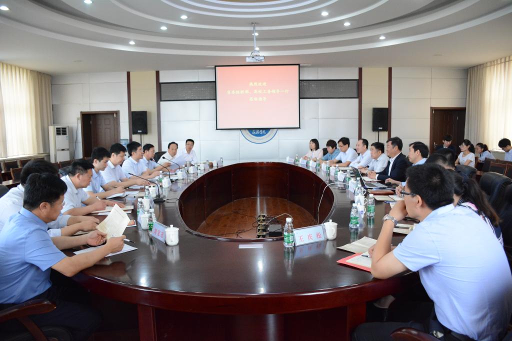 5月25日上午,河北省委组织部组织三处处长曹宪锋、高校工委干部处副处长郭立森一行莅临sunbet官网调研指导基层党建工作。河北省委组织部组织三处干部刘颖骁,沧州市委组织部、沧州市委非公经济和社会组织工委、沧州市委教育工委,黄骅市委组织部、黄骅市教育局的相关领导陪同参加了调研。院长王化深、党委书记魏旺强等党委班子成员及sunbet官网党委各部门负责人参加了座谈会。