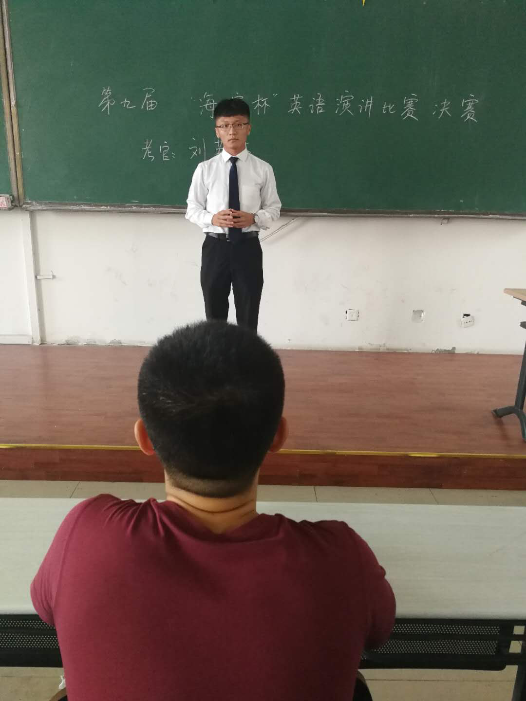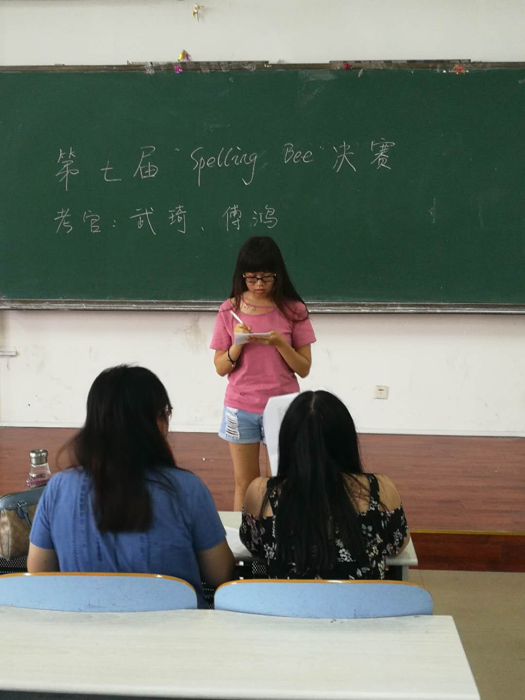 6月26号下午,sunbet官网2018年第九届“海滨杯”英语演讲大赛和第七届Spelling Bee单词拼比大赛决赛在通方楼一楼举行。大学英语教研室马玉玲老师,朱秀娟老师,刘英杰老师,武琦老师,傅鸿老师担任决赛评委。