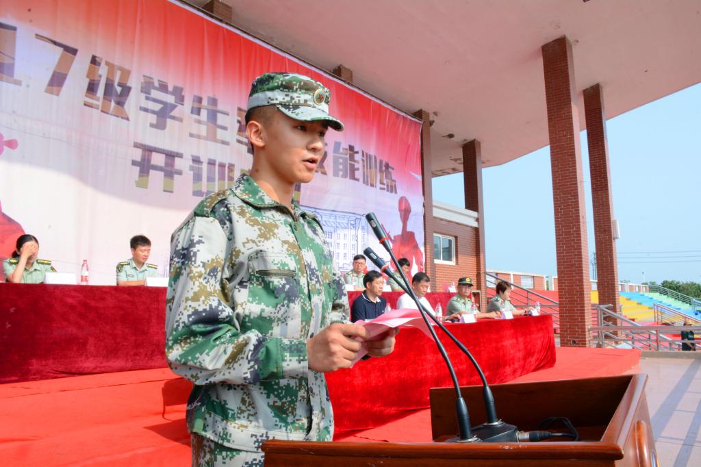 党委副书记魏炜宣读“北京交通大学海滨学院2017级学生军训团”组成名单。