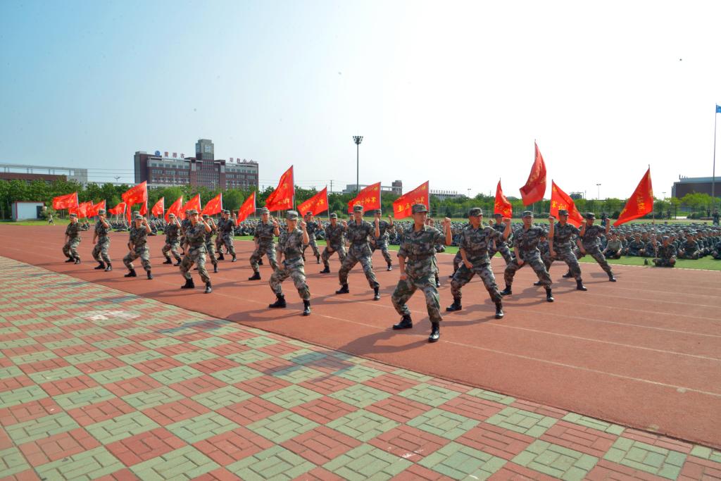 北京交通大学国防生教官代表进行了军体拳方阵表演