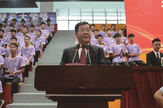 黄骅市委常委、市人民政府副市长靖瑞锋致辞。他首先欢迎同学们来到黄骅这座多元热情的城市,并希望同学们时刻牢记时代赋予大家的崇高使命,不断提升自身能力,努力练就扎实本领,脚踏实地,勤奋拼搏,真正成为一名德才兼备的高素质人才。