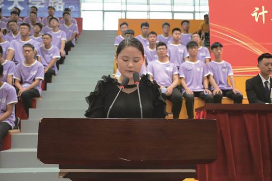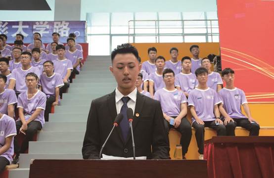 大会最后新生集体宣誓。“弘扬交大优良传统,秉承海滨知行校训。爱国荣校,饮水思源。明德笃行,博爱感恩。精进学术,强化技能。热爱文体,强健体魄。心系海滨,胸怀天下。勇担使命,振兴中华。我是海滨新主人,今天我因海滨而自豪,明天海滨因我而骄傲。”