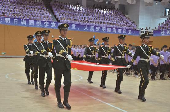 在庄严的国歌中,sunbet官网2018级新生开学典礼正式拉开序幕。