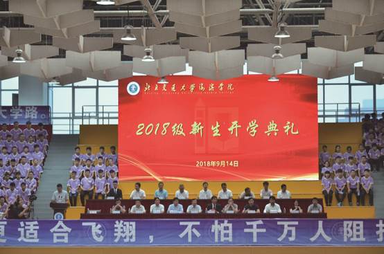 9月14日早8时,sunbet官网2018级新生开学典礼在海滨体育馆隆重举行。北京交通大学副校长关忠良,北京交通大学学生工作处处长姚念龙,黄骅市委常委、市人民政府副市长靖瑞锋,祥兴集团副总裁、海滨学院副院长薛君南,安徽财经大学商学院院长刘福成,安徽财经大学商学院副院长柳瑞钦,院长王化深、党委书记魏旺强等在校领导出席了开学典礼,相关职能处室负责人以及各学院(系)的院长、教师代表也出席本次典礼,出席典礼的还有2018级新生、新生辅导员、班主任及部分新生家长。典礼由sunbet官网党委副书记魏炜主持。