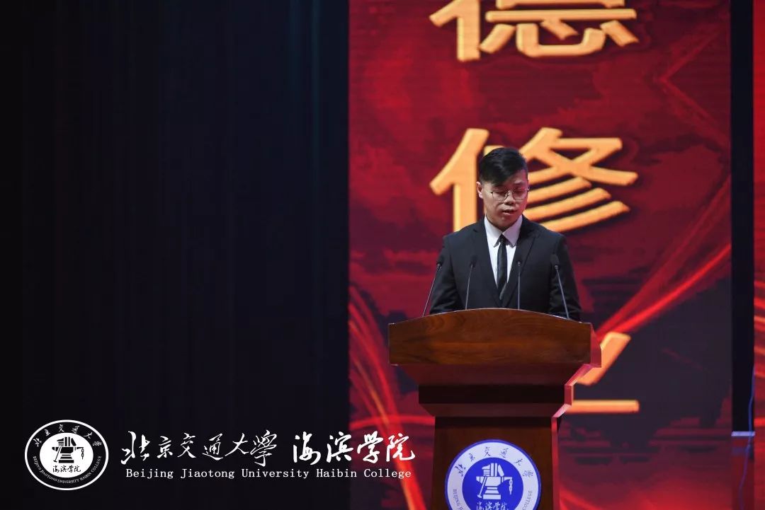 校友吴宗凯首先向母校表达了祝福并对恩师表示感谢,他回忆了海滨的过去和今朝,最后表示将始终秉承着“进德修业、知行合一”的校训精神,克己修身,锐意进取,以德树人。