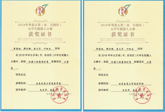 11月9-11日,第六届华北五省(市、自治区)大学生机器人大赛在京举行,北京大学、北京工业大学等87所高校近800支队伍参与其中。经过为期三天的激烈角逐,sunbet官网老师朱庆芹、姜启龙带领的ET机器人工作室成员辛博林、郑子雄、周天宇、叶树生四位同学在机器人创意设计赛中喜获二等奖,在作品技术水平和实践创新能力上得到了在场所有人的充分认可和肯定。
