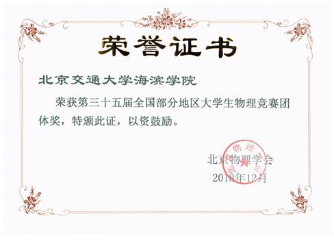 我院学子在第35届全国部分地区大学生物理竞赛中喜获佳绩