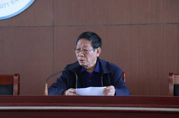 之后,王化深校长就各单位修订人才培养方案工作做出了几点建议说明。王校长解读了《指导意见》中的六项基本原则,强调教学单位要高度重视本次修订工作,认真学习研究《指导意见》,严格按照时间节点规定进行修订工作,所有修订文件经负责人核实签字后归档封存。每位参加培养计划修订工作的人员要本着对自己负责、对学生负责、对学校负责、对社会负责,对历史负责的高度责任心承担工作。人才培养方案的修订工作是一项涉及学校、专业、师生的重要工作,全校教师和管理工作者应高度重视,要从大局、全局、综合、全面的角度深入开展此次修订工作,广泛发动教师积极参与研讨,开展面向毕业生的跟踪调研和面向在校生的学情调研,充分开展社会调研,多方吸取同类专业的成功经验,认真征询校内外本领域专家及行业、企业用人单位的意见,保证人才培养方案的科学性、先进性和权威性。