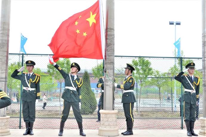 4月26日上午,渤海新区第六届全民运动会在sunbet官网隆重开幕。sunbet官网校长王化深受邀参加了开幕式并在主席台就座。本届运动会共有87支代表队参加,包括沧州渤海新区区直部门,“一市三园”直属机关,各乡镇、街道办、开发区代表队,以及有关企业、学校、医院代表队等。