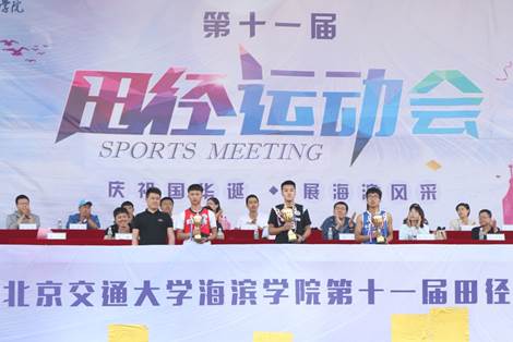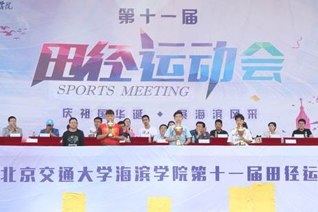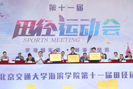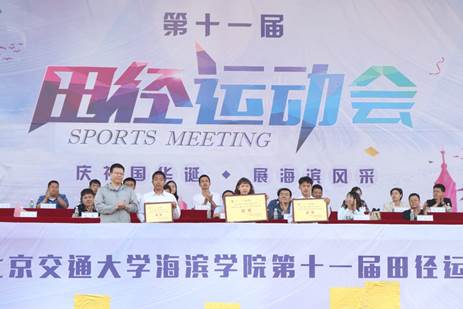 总裁判长于洋宣布第十一届田径运动会比赛结果。轨道交通学院、经济管理学院、电子与电气工程学院分别获得团体总分前三名;轨道交通学院、电子与电气工程学院、机械与动力工程学院分别获得男子组团体总分前三名;经济管理学院、计算机与信息技术学院、轨道交通学院分别获得女子组团体总分前三名;电子与电气工程学院、经济管理学院、化学工程系荣获体育道德风尚奖;经济管理学院、机械与动力工程学院、轨道交通学院分别获得第八届拔河比赛前三名;轨道交通学院、经济管理学院、土木建筑工程学院分别获得第十届篮球联赛女子组前三名;电子与电气工程学院、轨道交通学院、机械与动力工程学院分别获得第十届篮球联赛男子组前三名;轨道交通学院、土木建筑工程学院、机械与动力工程学院分别获得第三届七人制足球联赛前三名;经济管理学院、电子与电气工程学院、土木建筑工程学院分别获得第八届排球联赛前三名;王薇、杨海林、王猛、刘少伟、王茵等20人荣获优秀裁判员称号。
