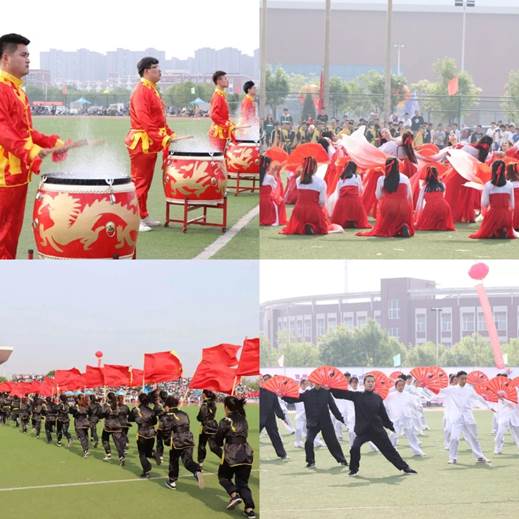 开幕式表演以击鼓方阵拉开帷幕,击鼓其镗,风华正茂;扇舞方阵以红色长稠扇凝聚着对盛会热情而美好的祝愿;展现着昂扬斗志的舞旗方阵,催促我们勇往直前;黑白相间的太极扇方阵,在行云流水间迸出气势磅礴的气场;跆拳道方阵年轻朝气尽显活力,眉宇间尽显少年雄健,筑中华绮梦;位卑未敢忘忧国,退伍复学学生组成的八一协会方阵,桃李年华,展示了参军报国、自强担当的好志向;最后出场的啦啦操方阵踏着青春的节拍,以充满阳光的笑容向海滨献礼,向青春献礼。