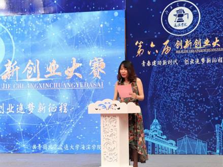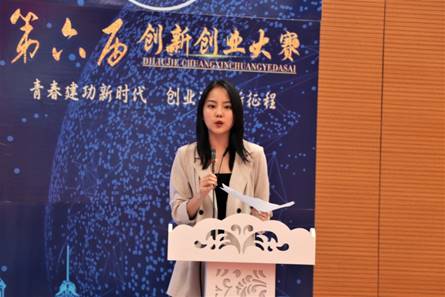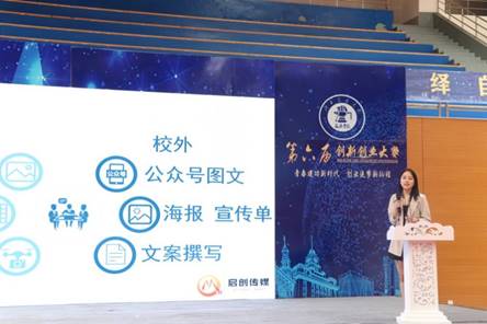 优秀奖团队——启创传媒有限公司代表王征致获奖感言,她讲到大学生创业活动是一个真正发挥学生才华、展现创新思想的大好机会,本次创新创业大赛无疑是一个很好的平台,一个人的力量或许有限,一个团队的力量却是不可估量,启创传媒有限公司一定充分利用此次机会,以此次大赛为出发点,在今后创新创业的道路上努力取得更好成绩。